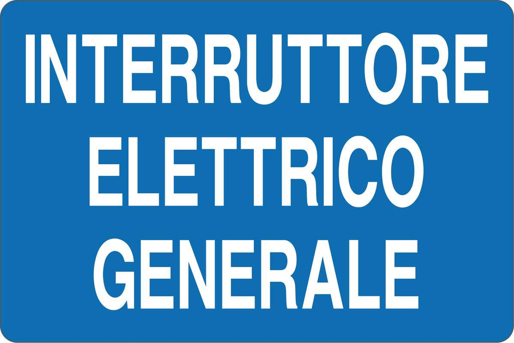 Cartello 'INTERRUTTORE ELETTRICO GENERALE' in alluminio piano verniciato. Dimensioni 200X300mm