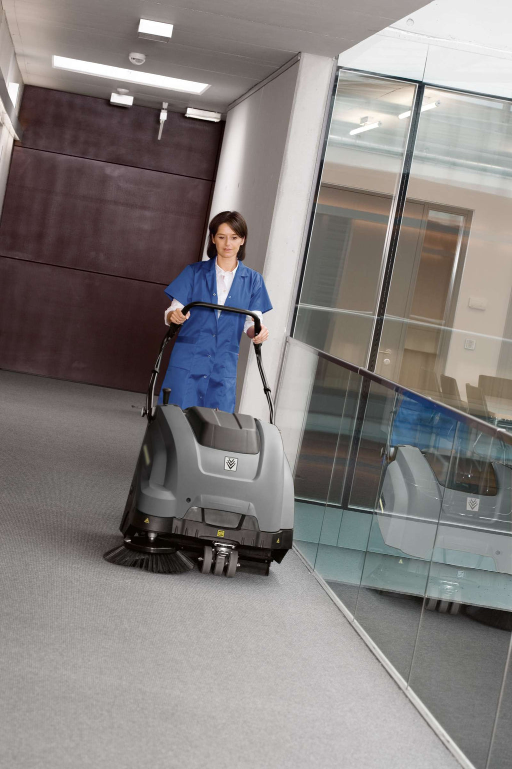 Spazzatrice trazionata a batteria. Nessuna emissione di gas di scarico. Questa versione non prevede la batteria ed il caricabatterie che devono essere ordinati separatamente. KM 75/40 W Bp è una spazzatrice a batteria, con trazione ed efficiente sistema di aspirazione della polvere. Nessuna emissione di gas di scarico, silenziosa e adatta per la pulizia di aree da 600 mq, ideale per interni. Altri dettagli tecnici: motore in corrente continua da 400 W; regolazione della velocità di lavoro da 0 a 4,5 km/h; sistema spazzante con principio del getto all’indietro; spazzola laterale attivabile e regolabile senza l’ausilio di attrezzi; rullospazzola principale sostituibile e regolabile senza attrezzi; sistema di filtraggio con piatto plissettato in poliestere (superficie filtrante 1,8 m2); sistema scuotifiltro meccanico; sostituzione filtro senza attrezzi; vano raccolta con capacità di 40 litri provvisto di rotelle e maniglia estraibile; display EASY Operation; archetto di spinta regolabile in altezza; attivazione della trazione e della serranda per lo sporco grossolano direttamente sull’archetto di spinta. Questa versione non prevede la batteria ed il caricabatterie che devono essere ordinati separatamente.